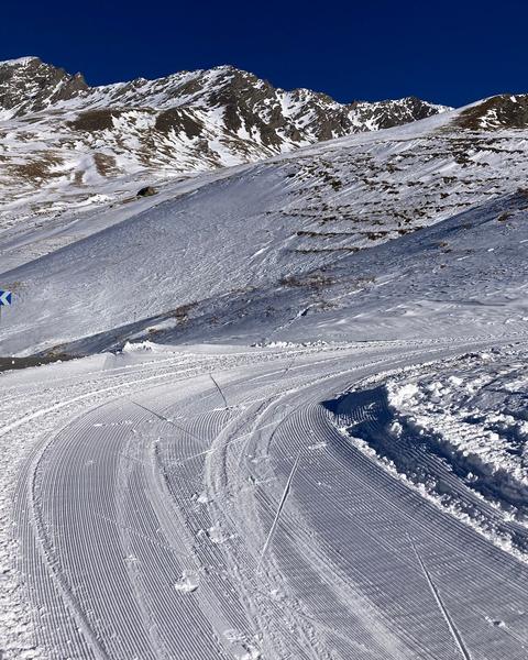 Skier sur la route mythique du col Agnel, quel expérience incroyable ! La date de damage peut être modifiée en fonction des conditions nivologiques, météo et d'enneigement. Pour le 1er de l'an on s'arrête au Refuge !