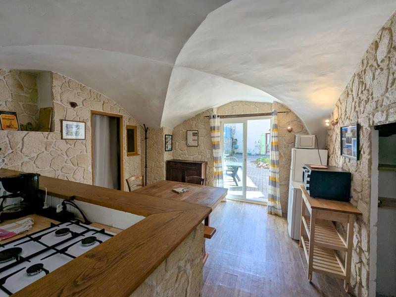 Vicino alle falesie e al cuore del villaggio medievale, un grande appartamento affascinante per 2 a 4 persone. Cucina luminosa con accesso alla piccola piazza di Boureynaud, soggiorno a arco, fresco e spazioso.