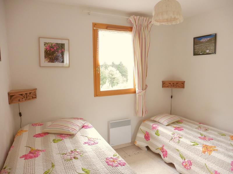Una camera da letto con due letti singoli (90x190) e un grande armadio a muro.
