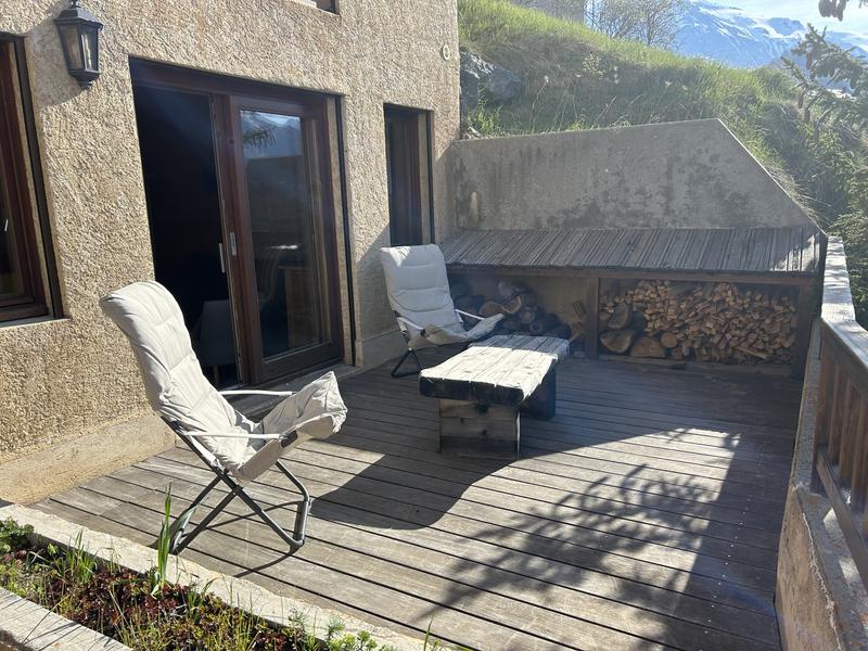 Comprenant 2 chambres avec un lit double, un coin montagne avec lits superposés, une belle terrasse de 16m2, un salon lumineux, le tout dans un style montagnard.